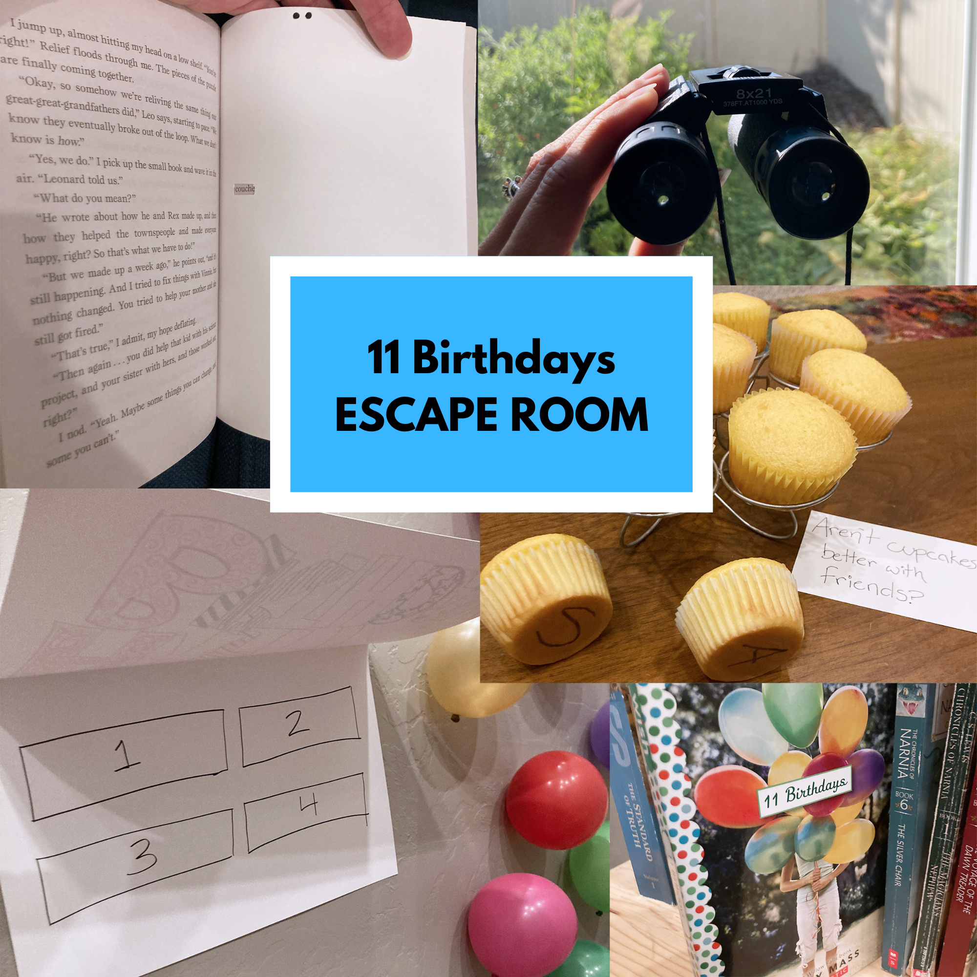 My son’s 11th birthday was a no school day this year! I knew I wanted to come up with something fun that would take him a lot of the day– but also wouldn’t take me forever to put together. One of his favorite books is 11 Birthdays by Wendy Mass — a story about a girl stuck in a Groundhog Day-style time loop on her 11th birthday.