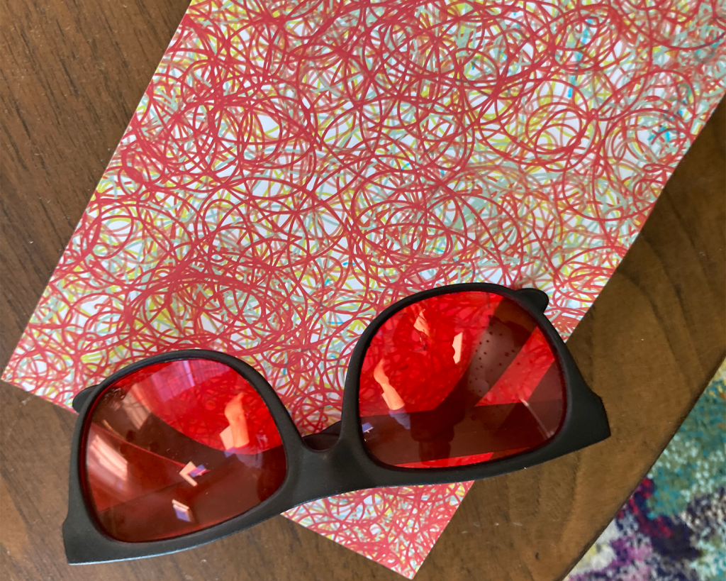 -The words “Happy Birthday” on the front of the card were filled in with different patterns. I tried to make them look like that might be important. A couple had stars. I even recreated with markers the spy-paper look, which did fool them. They spent awhile studying it with the red glasses (I had written “Hi!” underneath for them to find when they did this).