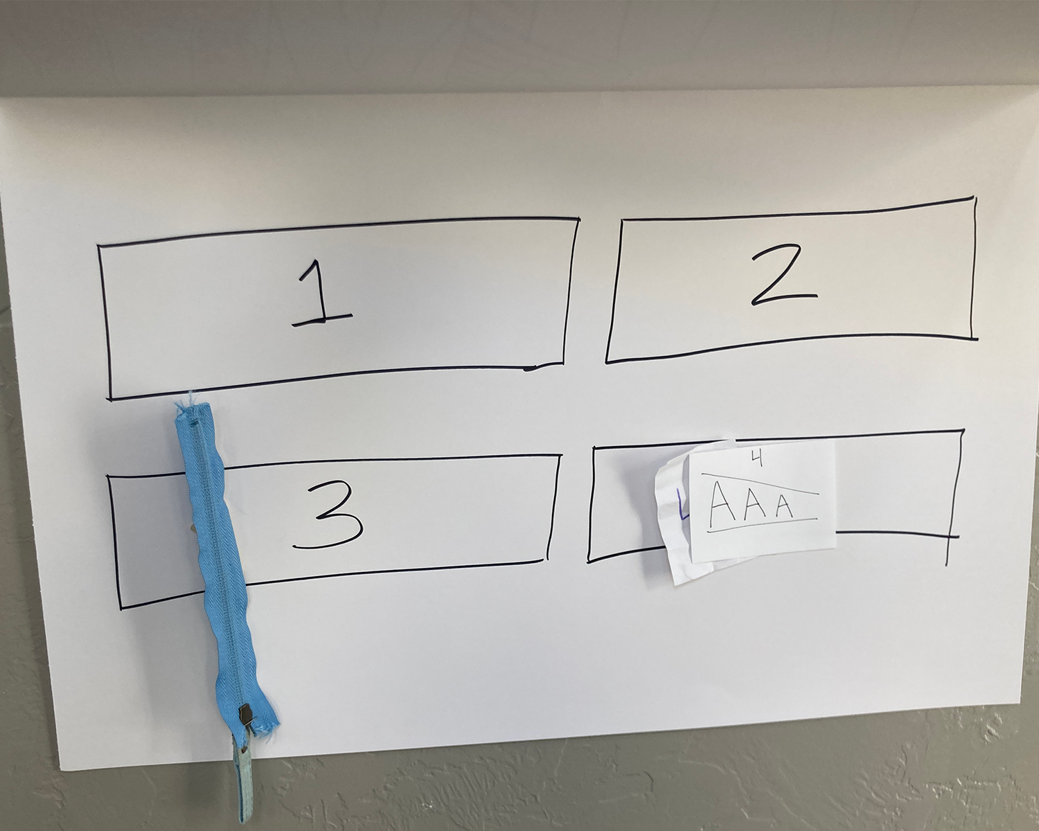 -I had a coin-purse zipper pouch that I hid under the couch so that if they got a 3 or the 4 words they might think it was referring to that.