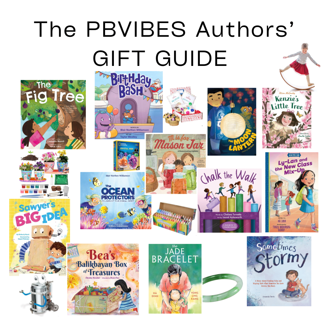 I’ve gotten together with a group of my author friends–we call ourselves the PB Vibes because we believe that books should inspire feeling–and we’ve come up with some gifts to give with the book! You’ll see a whole list of books and gifts for different kids and different situations.