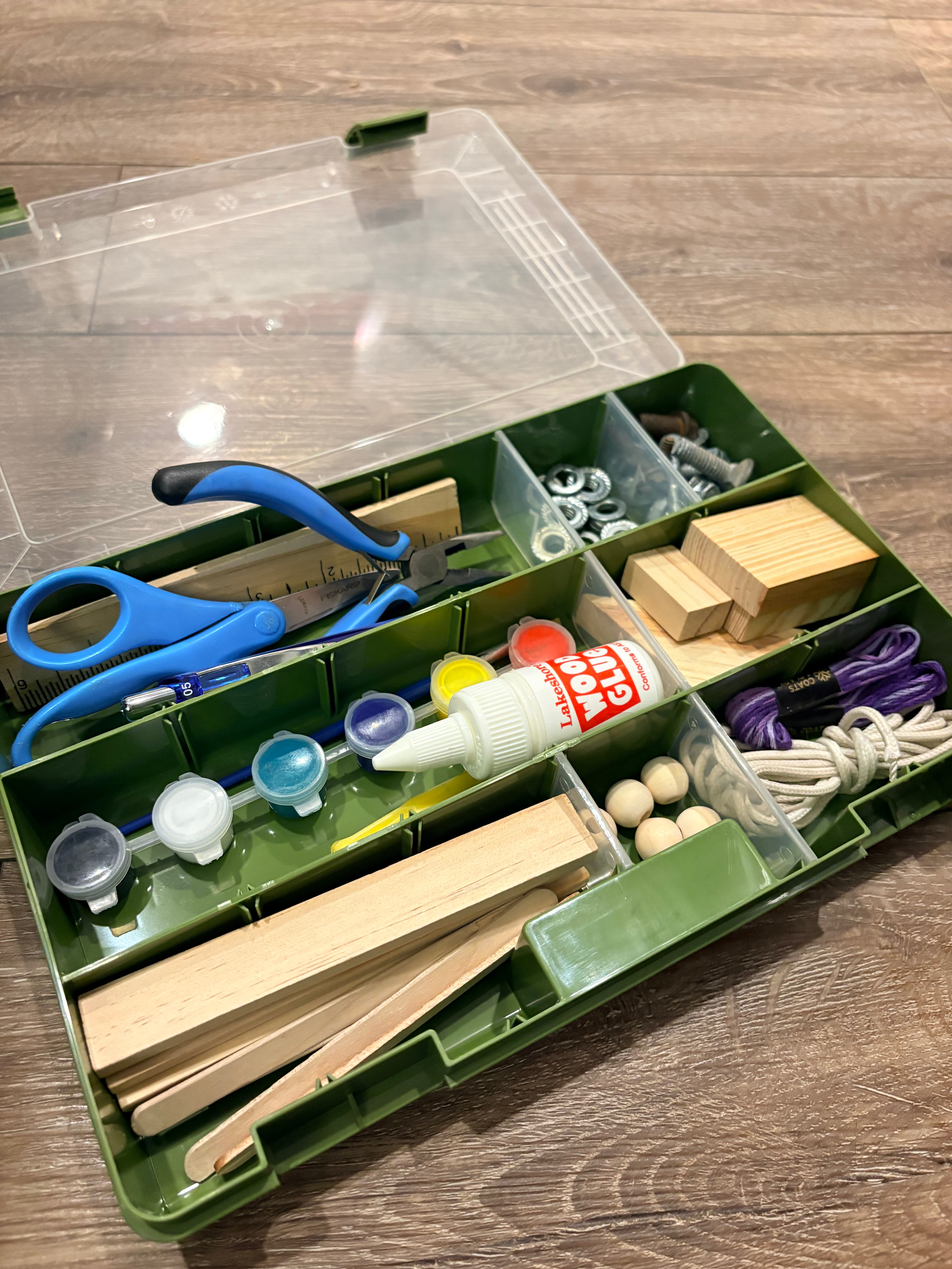 Don’t be afraid to find things thrifted. Goodwill is a great source for boxes, tools, and sometimes has craft supplies. My son likes to repurpose LEDS, bolts, wires etc from electronics headed for the trash.